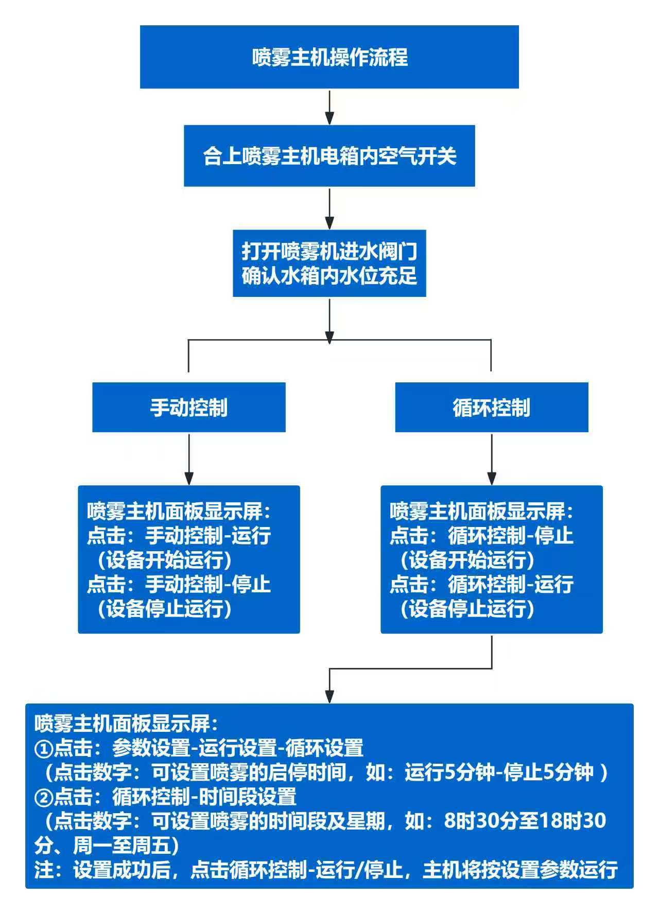 2. 合上喷雾主机电箱内空气开关。